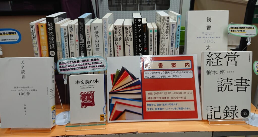 富士見図書室カウンター付近 2025年11月3日(月)~2026年1月19日(月)