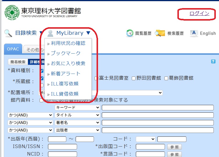 OPACの初期画面からも、「My Library」「ログインボタン」を選択して【利用者認証】画面からもログインできます。